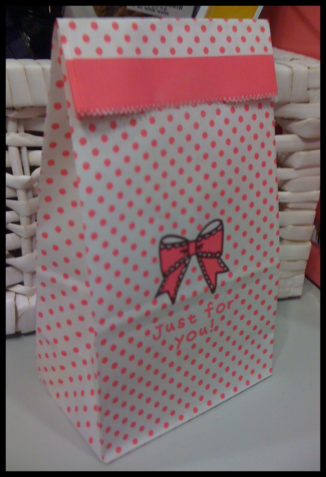 But instead of covering the whole bag edge with the label, i figure, it would be nicer to do it like this instead. So that the sides is till visible. I plan to do up the labels in Black and Pink so that it can blend well with the gift bag.